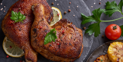 Small portion of fried carp with mashed potatoes